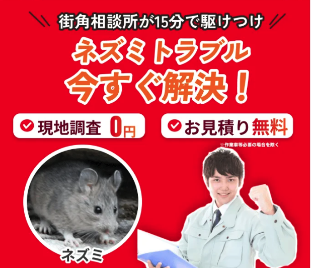 とにかく“今すぐ来てほしい”人向け。一次対応のスピードが早く、ネズミの侵入経路の特定が得意。