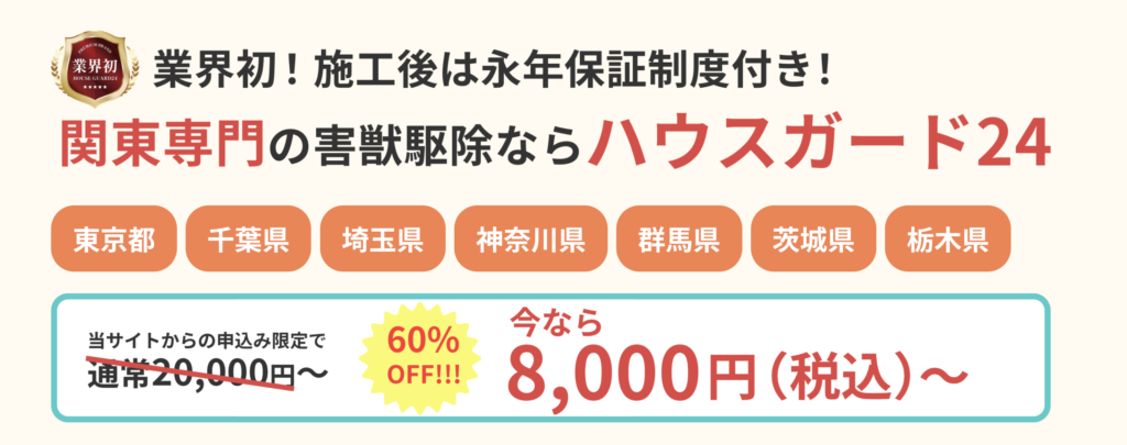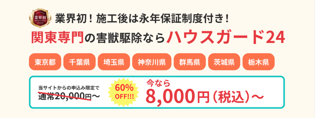 【特別キャンペーン実施中】駆除料金が最大60%OFFの8,000円(税込)〜